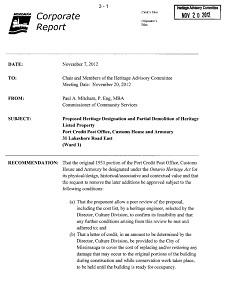 HERITAGE ADVISORY COMMITTEE (HAC): Meeting re the Port Credit Post Office redevelopment: January 22, 2013.