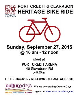 CULTURE DAYS: The TOPCA Heritage Ride is our contribution to Culture Days (Sept 27-29, 2019). The Port Credit waterfront, and especially the harbour area is a key part of Port Credit's cultural heritage: past, present and future!