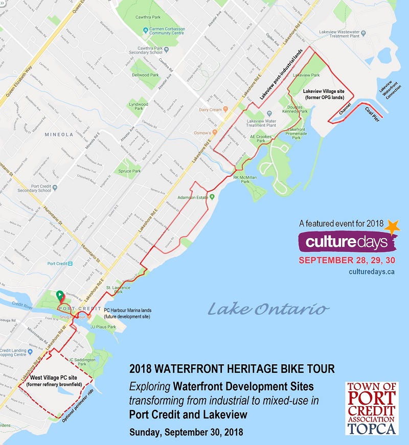 ► The TOPCA Ride is *featured* on the Mississauga section of the 2018 Culture Days website. We are excited to provide this contribution to the understanding of Port Credit and Lakeview's waterfront heritage: past, present and future!